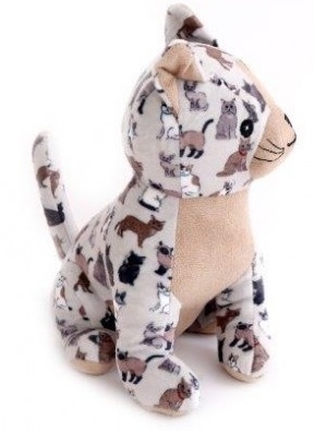 Cute Plush Doorstop In The Design Of a Cat With Images Of Cats All Over The Fabric.